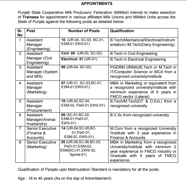 हाल ही में वेरका डेरी (The Punjab State Cooperative Milk Producers’Federation Ltd.) में विभिन्न पदों के लिए भरती निकाली गयी है |