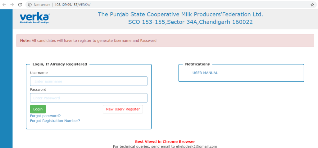 आवेदन के लिए आपको वेरका की वेबसाइट http://www.verka.coop/ पर जाना होगा |